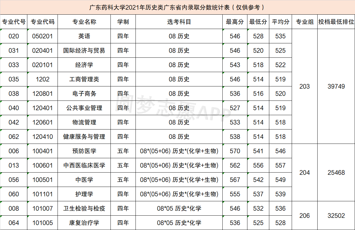 不管是历史科目类还是物理科目类,都高出广东省2021年批次线至少50分以上,可见广东医科大学是一所性价比相对较高的院校。
