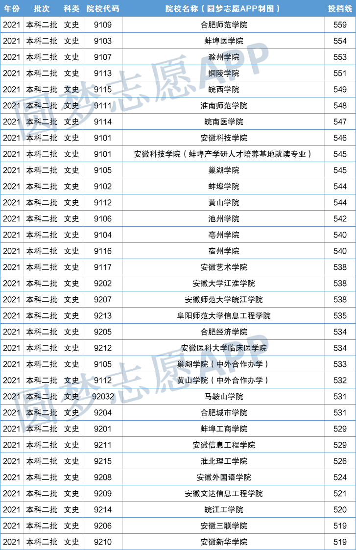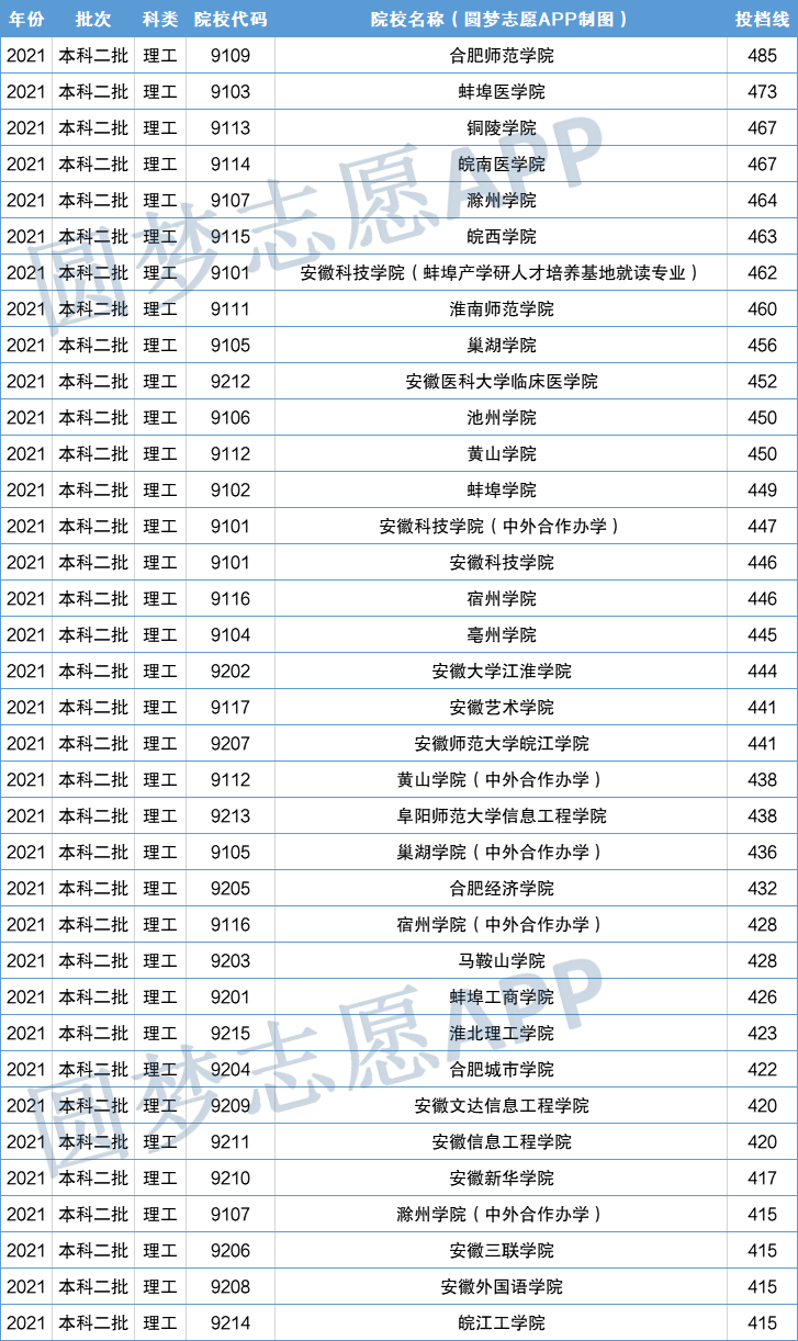(2021年安徽省二本线为理科415分、文科519分)