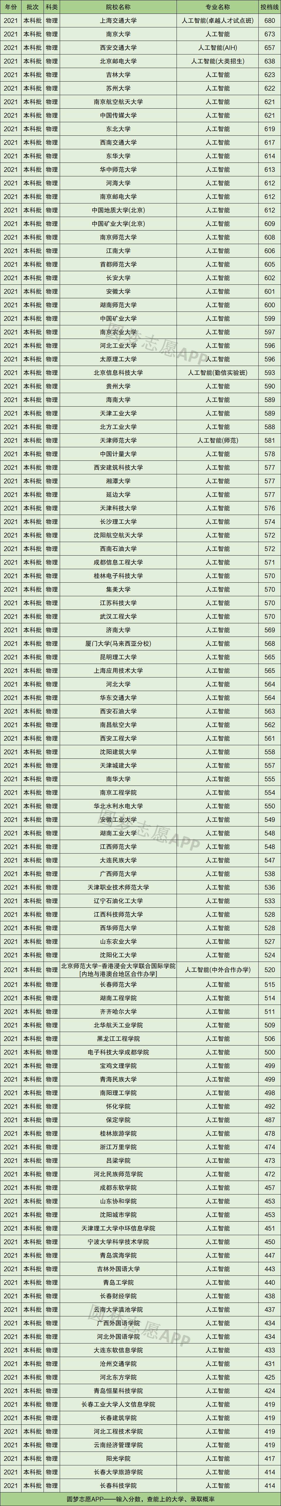 根据山东省和河北省教育考试院公布的2021年招录数据,本文将人工智能专业录取分数线按照从高到低排序,为大家整理了一份人工智能专业大学排名一览表,供2022届考生填报志愿参考。