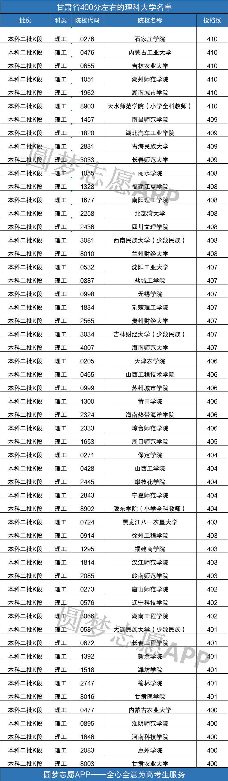 本文由于篇幅有限,仅列举安徽省、甘肃省400分左右的大学名单,供同学们参考,如果同学们还想了解其它阶段的成绩可在手机应用市场“”获取哦!