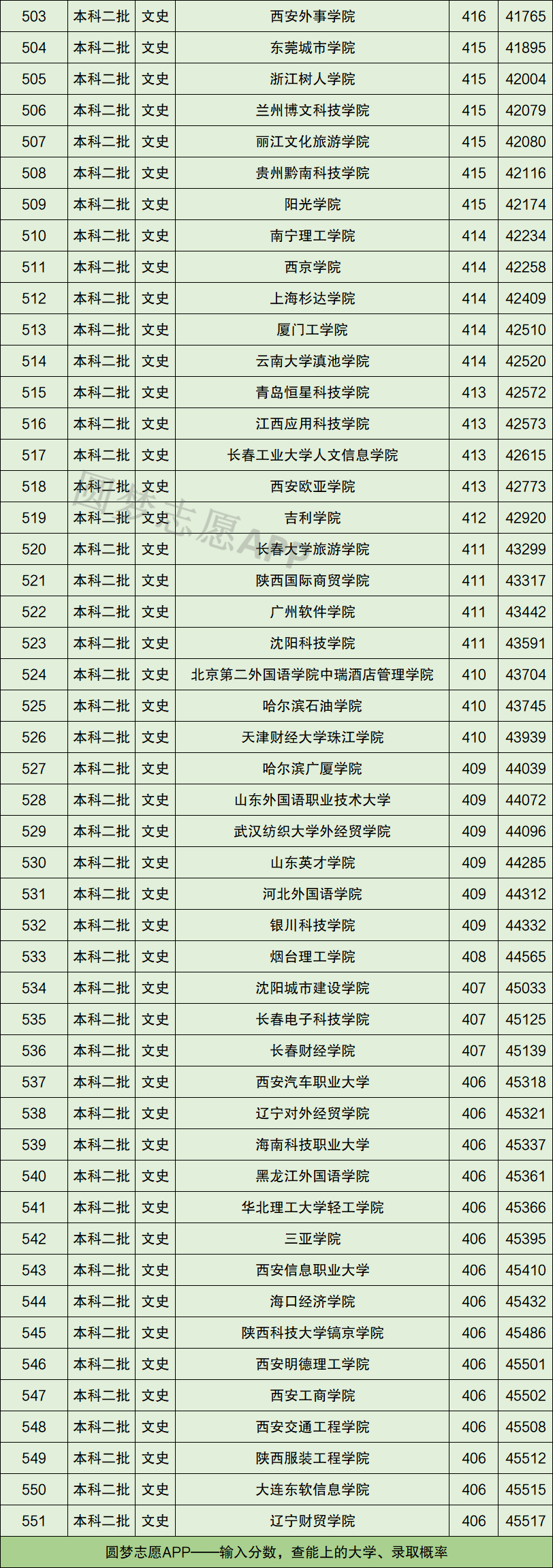以下为国内所有在陕西省文科招生批次为二批次的大学录取分数线以及位次排名,供2022年考生收藏与参考。2021年在陕西省文科本科二批招生的大学一共有551所,其中: