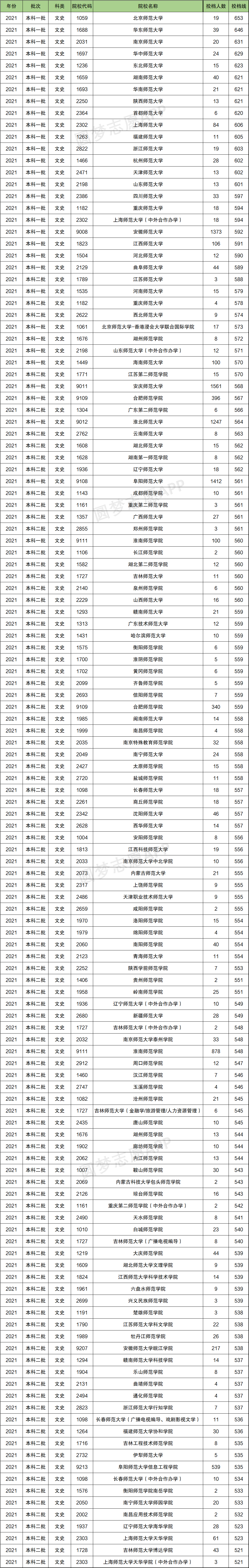 以下是根据安徽省教育考试院公布的2021年本科一、二批的投档情况,整理出的各师范院校最低投档分。