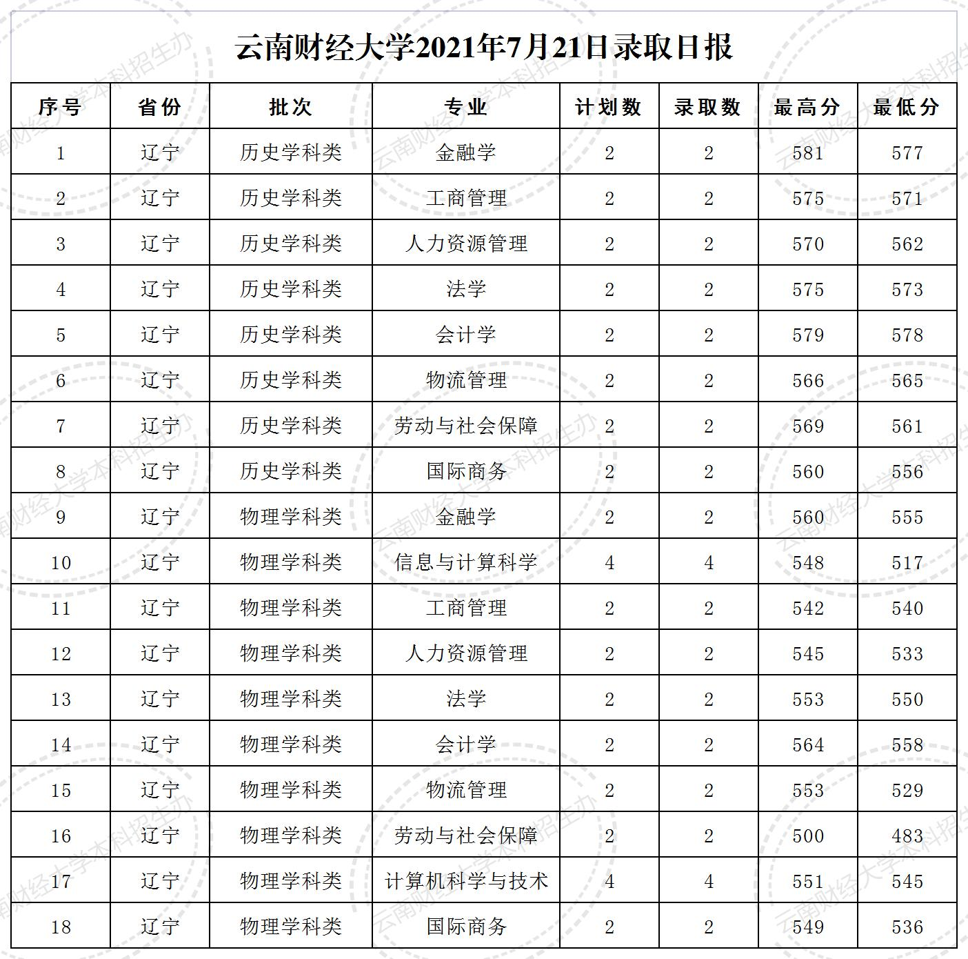 4、录取分数线:从云南财经大学2021年在辽宁省的录取情况来看,不管是历史学科类(批次线456分)还是物理学科类(336分),其收分都超过了批次线100分以上,可见该校的招生门槛还是很高的。