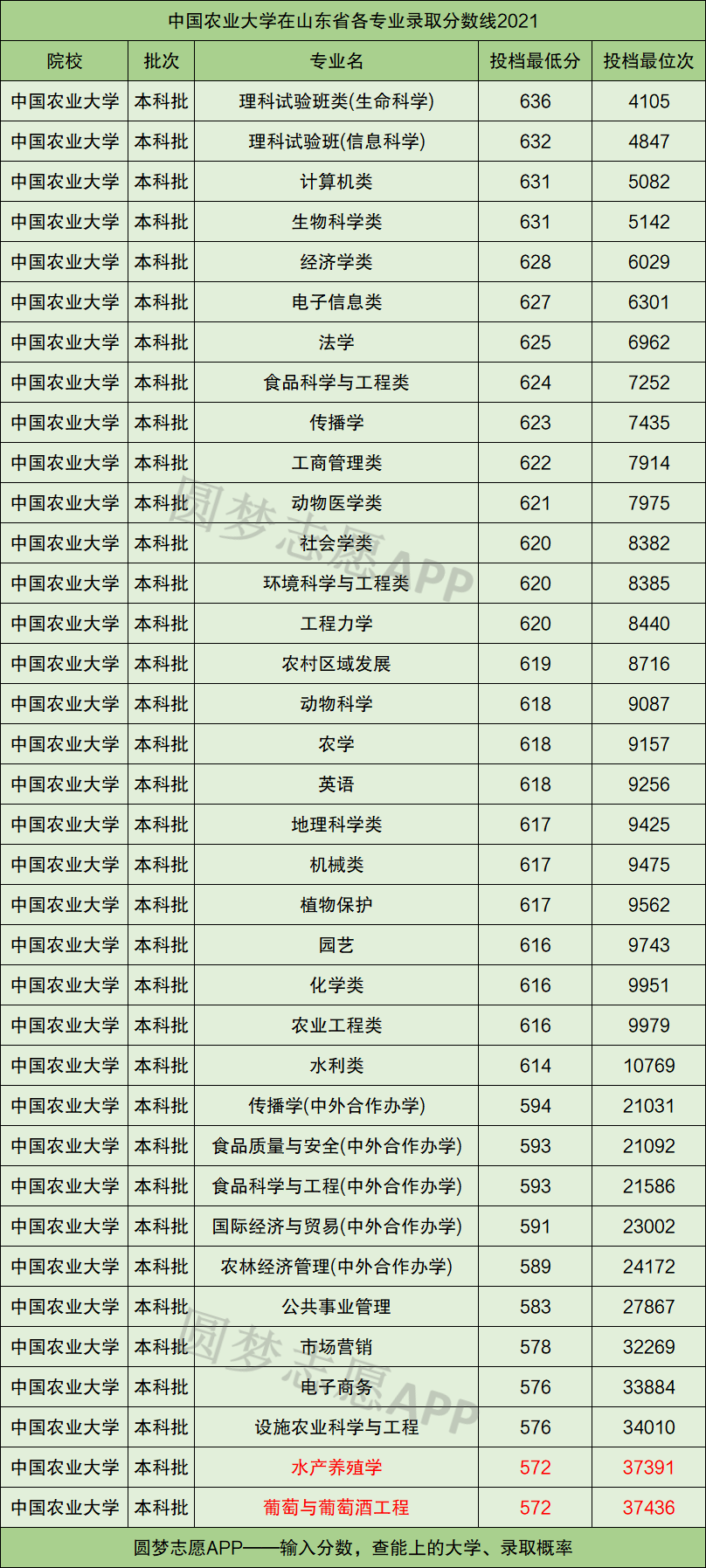 由于本文篇幅有限,只为大家整理了中国农业大学在部分省份各专业录取分数线2021,想了解其他省份专业录取分数线的考生,可哦。