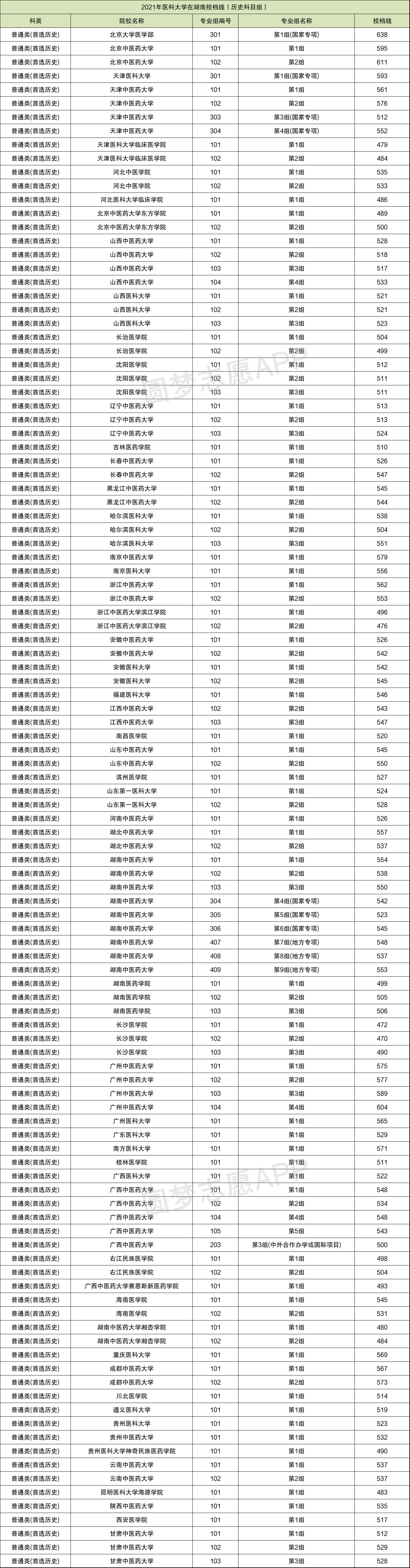 由于每所院校在每个省份的录取情况都不一样,小编就以湖南为例,根据湖南教育考试院发布的2021年本科批次投档线,为大家整理出医科大学在湖南本科批历史和物理科目组的投档分数线,供2022年考生参考。