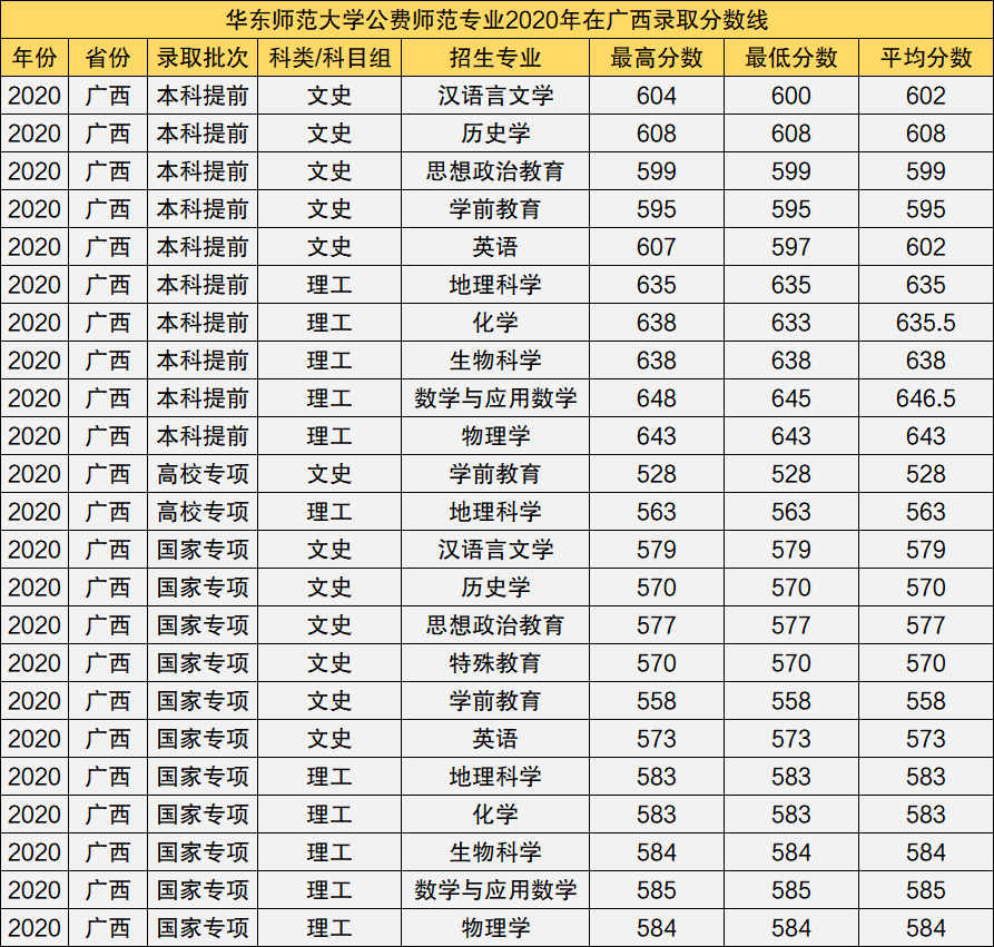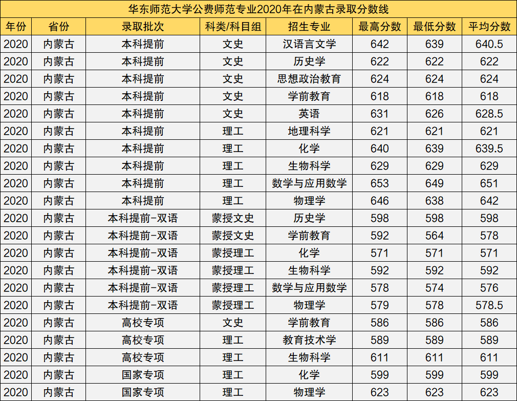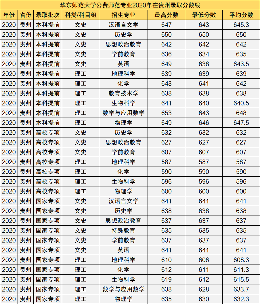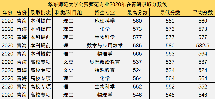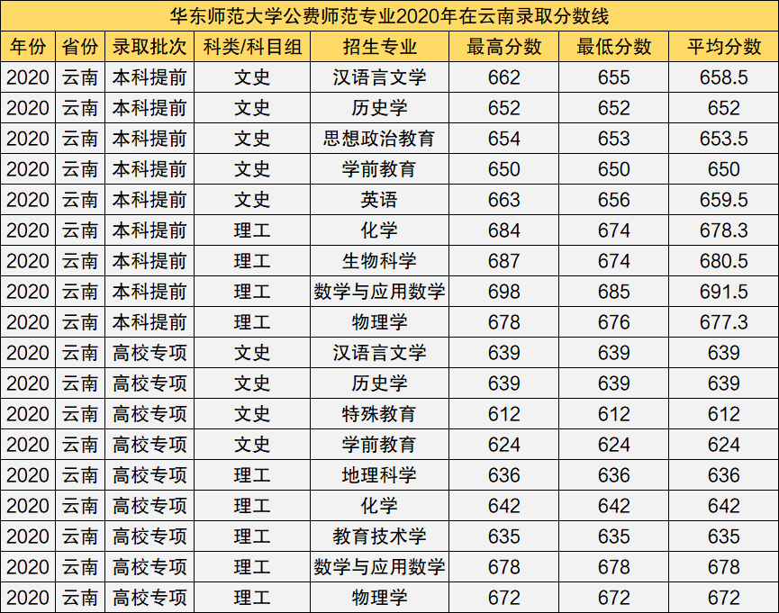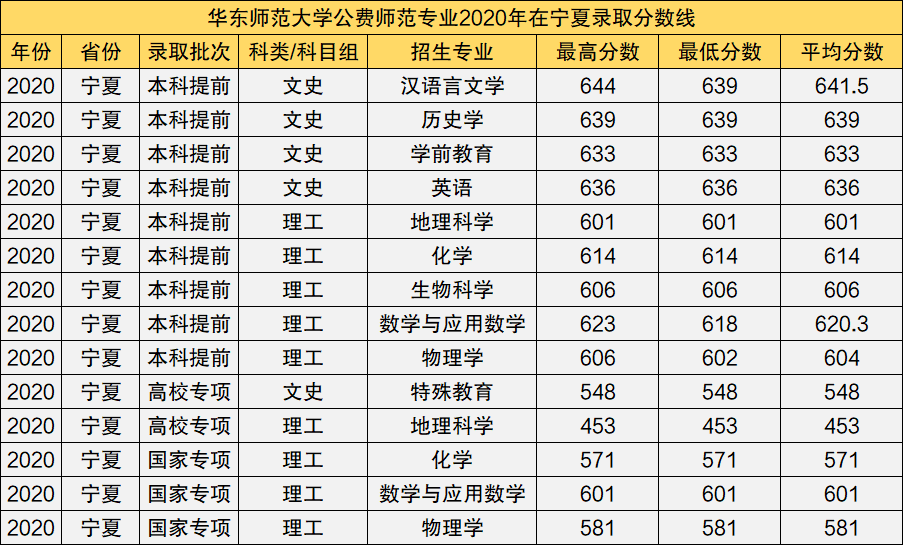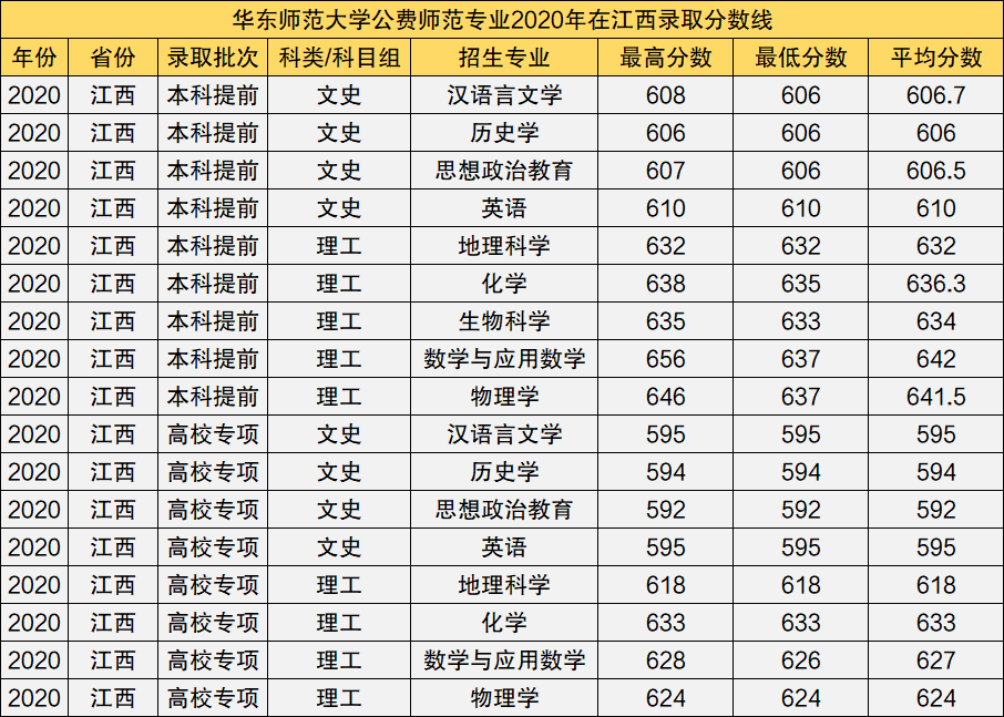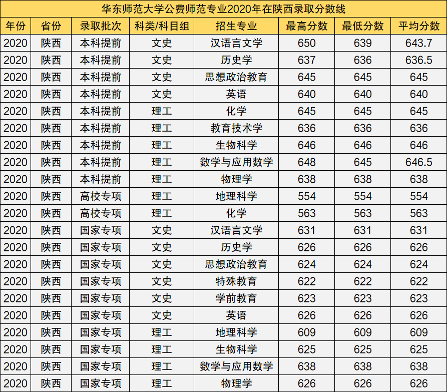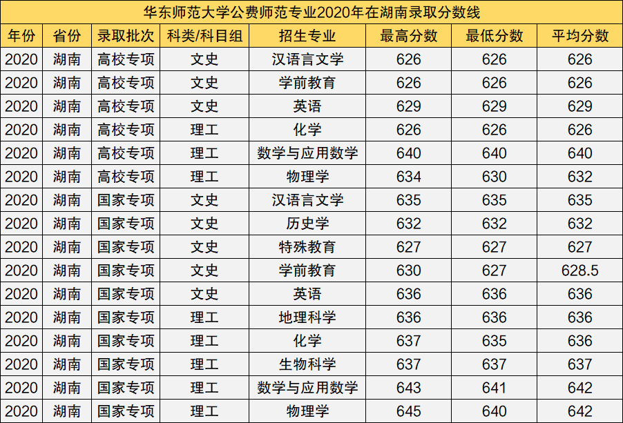二、华东师范大学公费师范生2020年录取分数线:分省分专业汇总