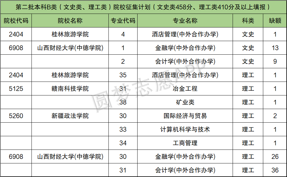 根据山西省教育考试院公布的情况来看,本次第二批本科B类院校院校征集志愿投档线为文科448分,理科390分,其中少数院校为文史458分,理工410分。