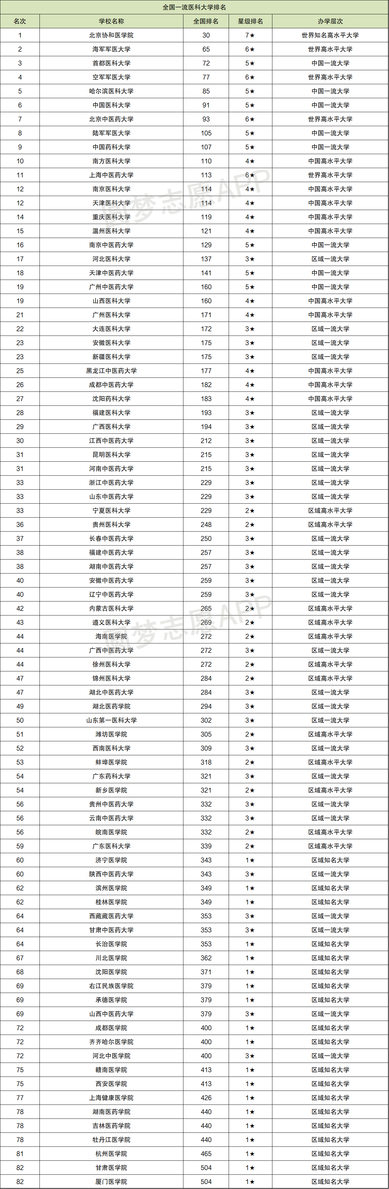 小编根据校友会2021年中国医药类大学排名,为大家整理出全国一流医科大学排名,供大家参考。