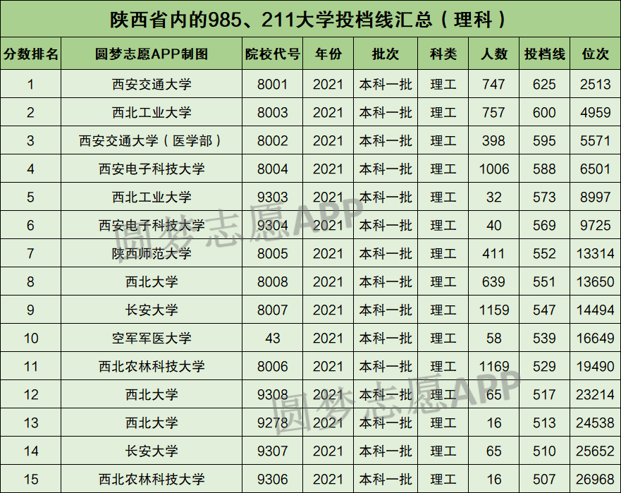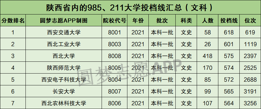 2021年陕西高考一本录取已经结束。根据考试院公布的信息,为大家整理了陕西省内的985、211大学2021年在陕西省的录取分数线排名,供所有的高考生查阅。