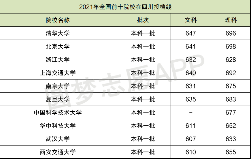 由于每所院校在每个省份的录取情况都不一样,小编就以四川和陕西为例,根据四川省教育考试院和陕西省教育考试院公布的2021年投档线,为大家整理出2021年中国前十院校在四川和陕西的投档分数线,供大家参考。