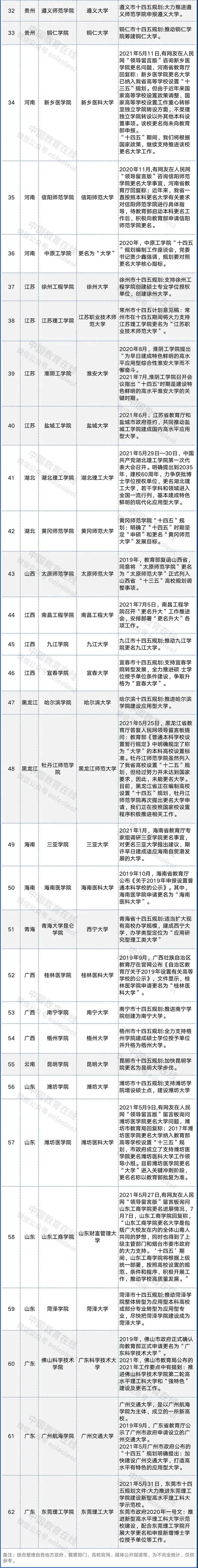 以下便是教育部2021学院改名大学名单: