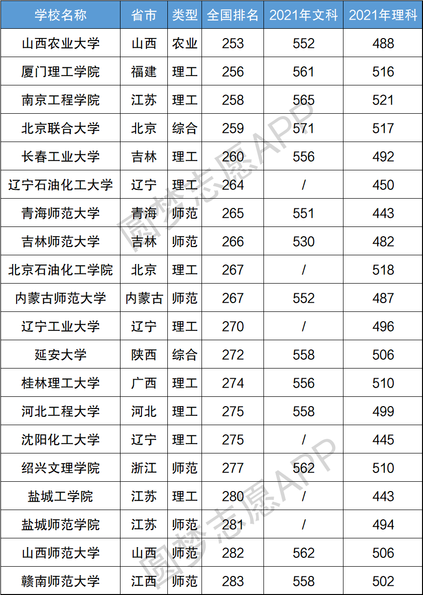 温馨提示:高校在各省的录取批次不同,以下高校在部分省份可能在本科一批录取,也可能在本科二批录取。查询以下高校近三年录取分数线,可以。