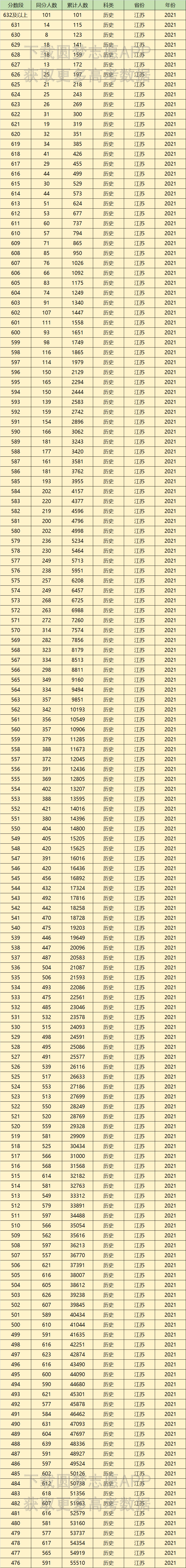 根据考试院公布的数据,我们整理出了2021年江苏省一分一段位次表,供2021考生们参考使用。