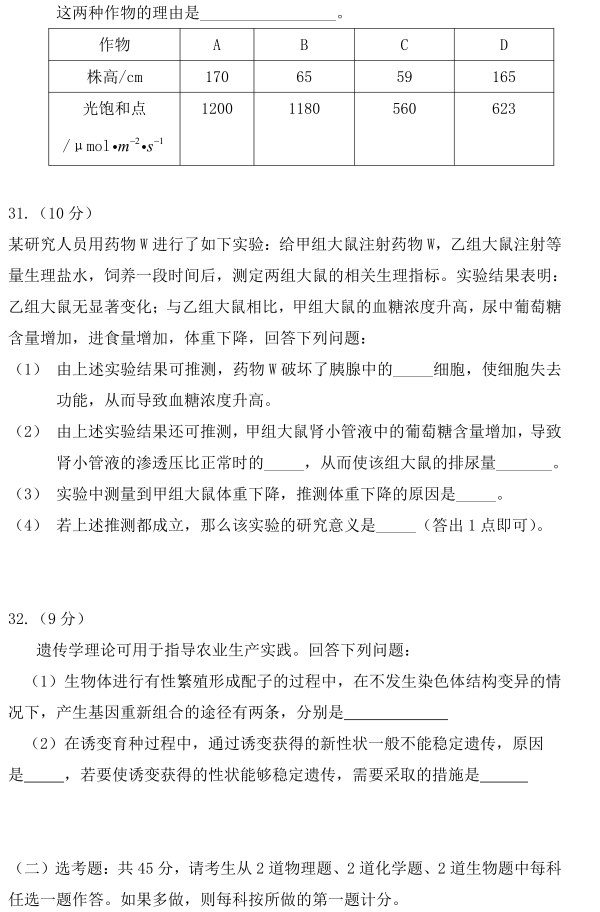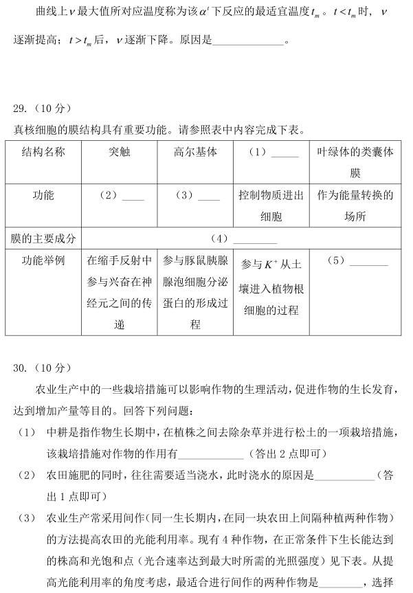 三、2020年河北生物高考真题及答案