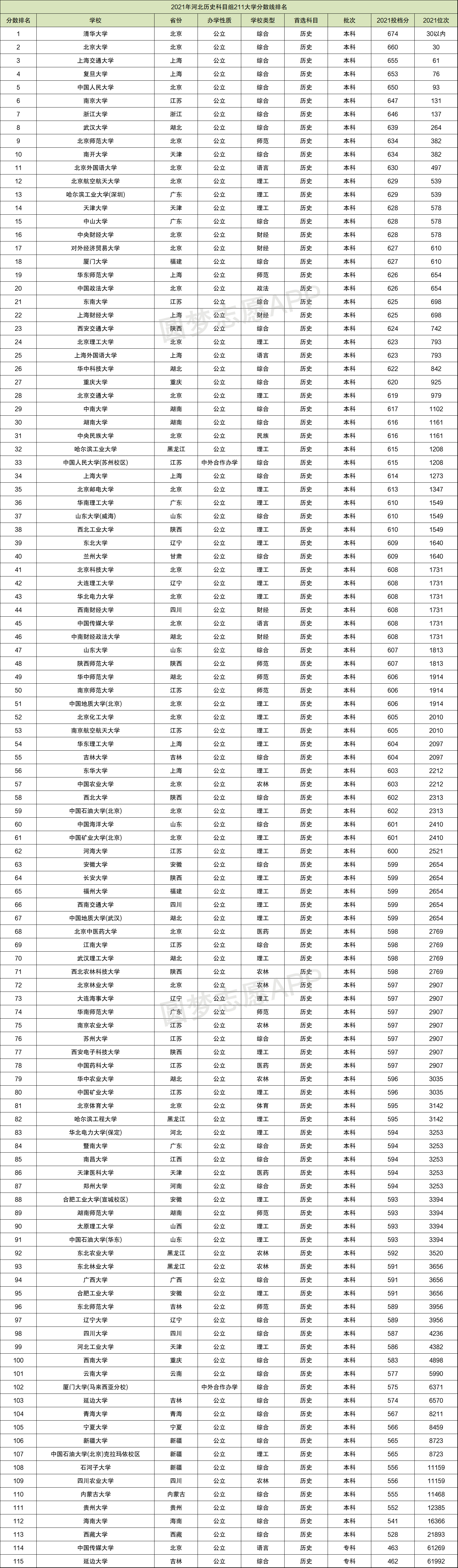 由于每所院校在每个省份的录取情况都不一样,小编就以河北为例,根据河北教育考试院公布的2021年招录情况,为大家整理出2021年211院校在河北分数线排名,供2022年考生参考。