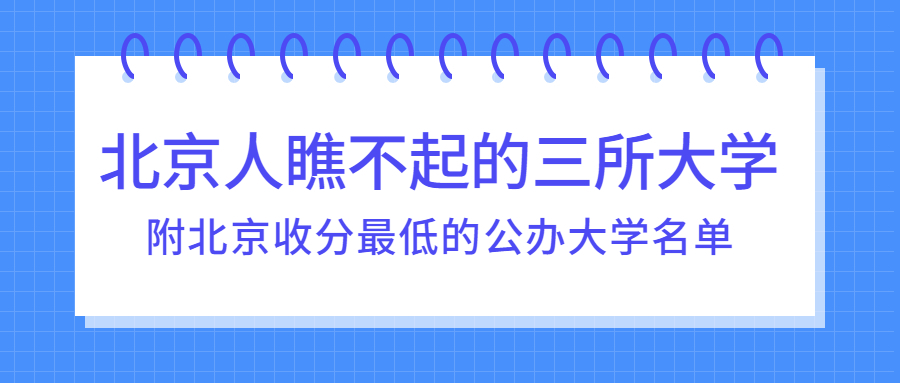 北京市汇聚了国内众多的知名大学,除了大家熟知的清华北大之外还有其他很多名牌大学,都是志愿填报的热门院校;本文为大家整理的是北京人瞧不起的三所大学是哪三所?2022北京收分最低的公办大学有哪些?