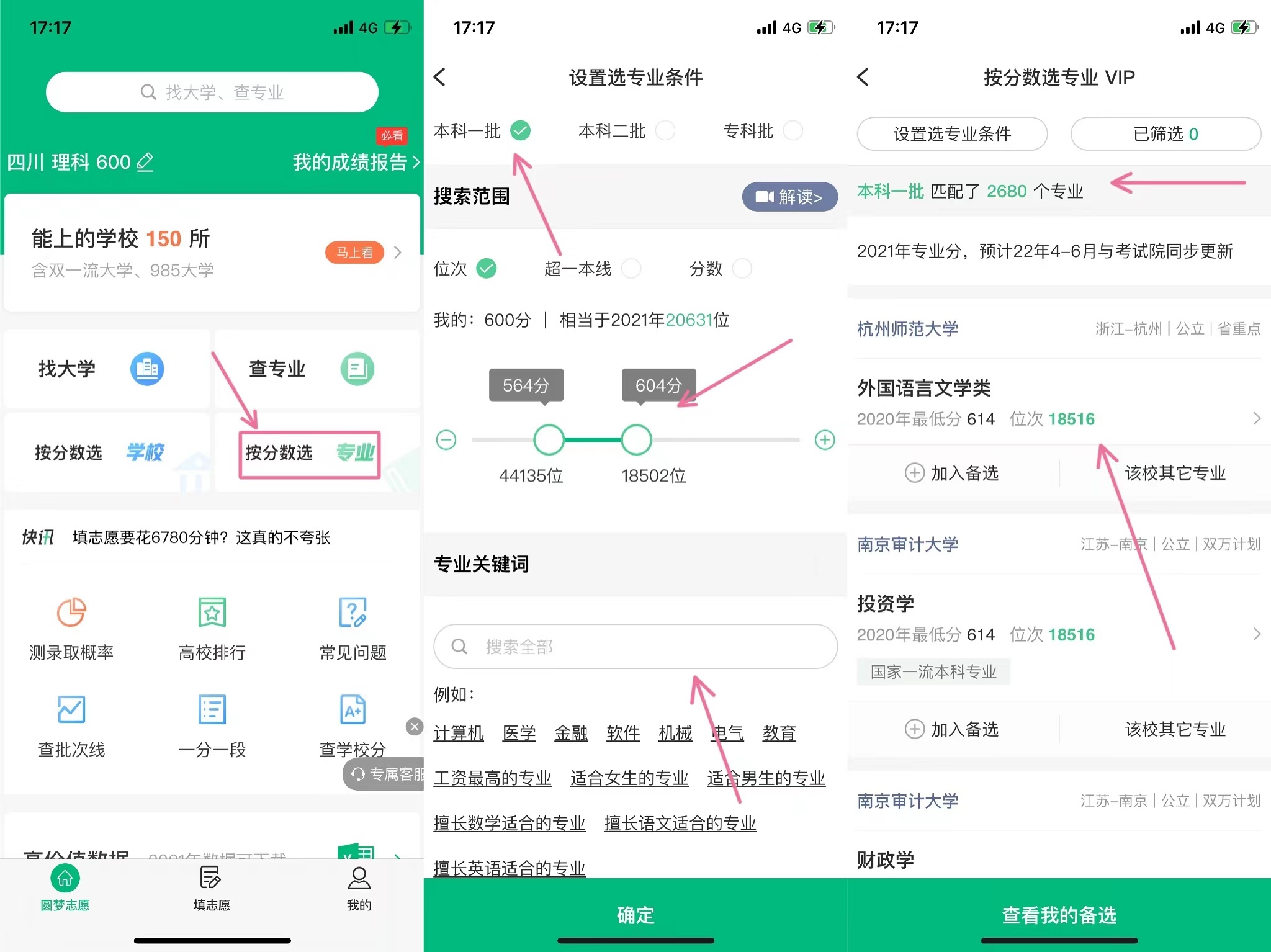高校招生简章、学科专业推荐、智能志愿填报、分数预测大学、一分一段表、历年数据 ...