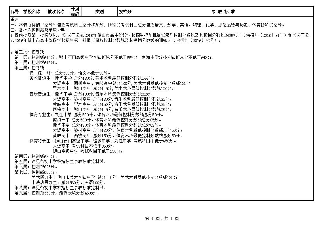 根据《佛山市2016年高中阶段学校招生考试工作意见》的规定,划定我区2016年高中阶段学校招生第二批招生学校各层次的投档分数线和录取标准(详见附件)。