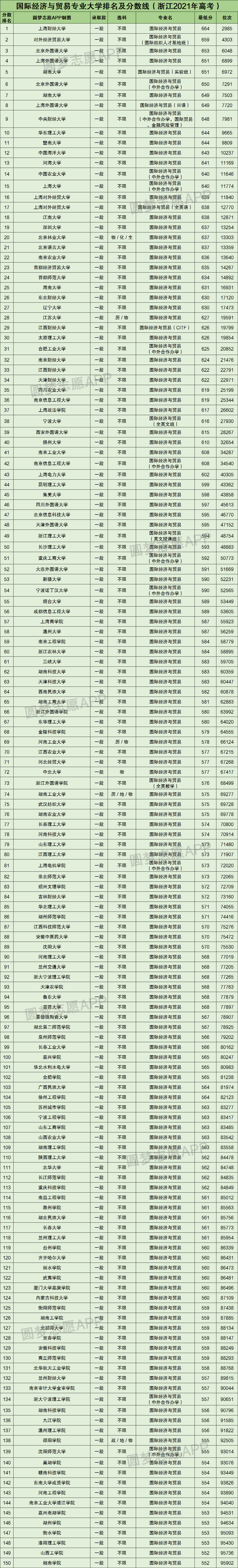 根据上图的分数线排名可知,在浙江考生心中,国际经济与贸易专业比较好的大学有: