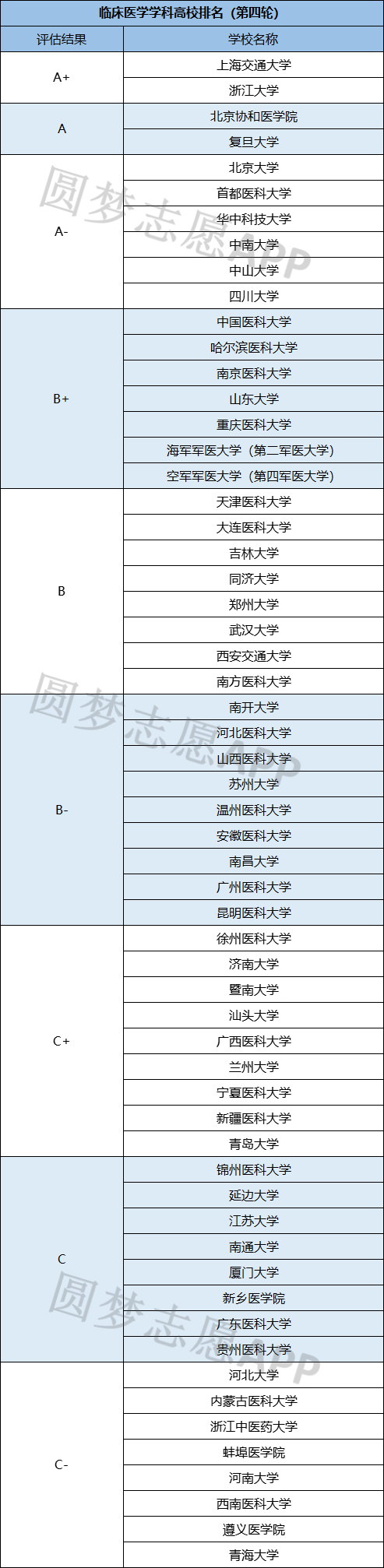由于全国第五轮学科评估排名结果暂未公布,因为最新学科评估高校排名仍然以教育部公布的第四轮学科评估为准,下面以“临床医学”学科为例,为大家整理了临床医学学科评估高校排名结果。