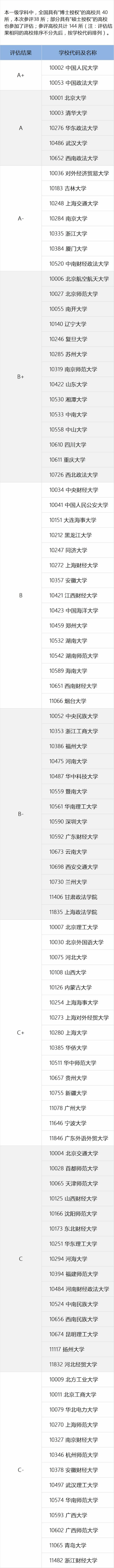 从上面的介绍来看,可以得知本科学法学专业有利于以后通过法考,国内哪些大学的法学专业是比较好的呢?根据教育部第四轮学科评估结果来看,全国高校法学学科评估结果排名如下:
