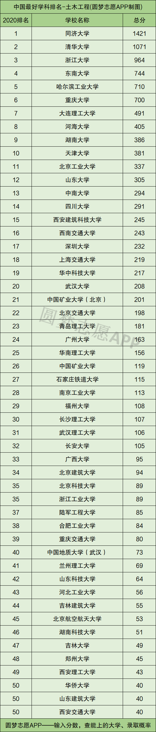 根据软科2020中国最好学科排名,土木工程专业大学排名中,比较好的学校有同济大学、清华大学、东南大学、中南大学、哈尔滨工业大学、重庆大学、湖南大学、浙江大学等。