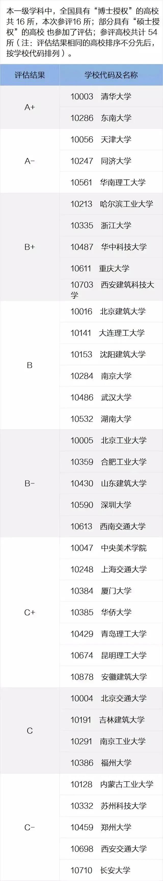 其次就是通过了全国高等院校建筑学专业教育评估的高校,具体如下: