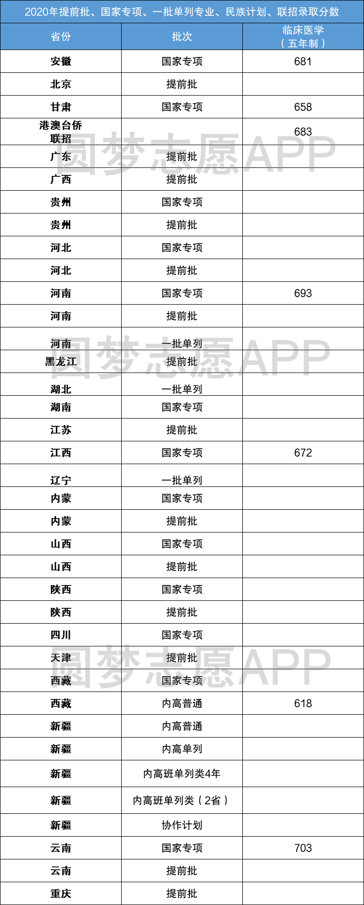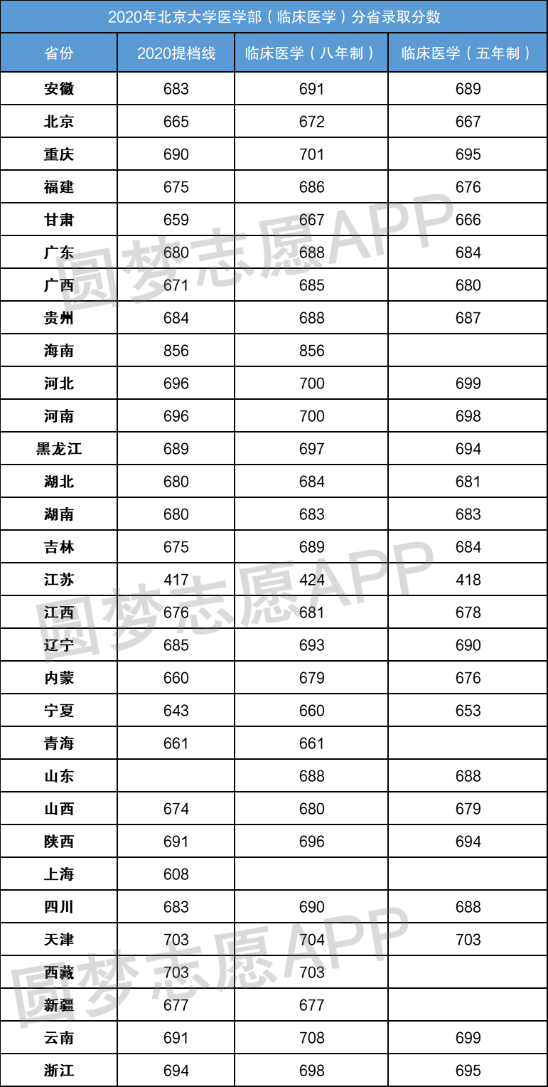 二、2020年北京大学临床医学专业在各省的录取分数线