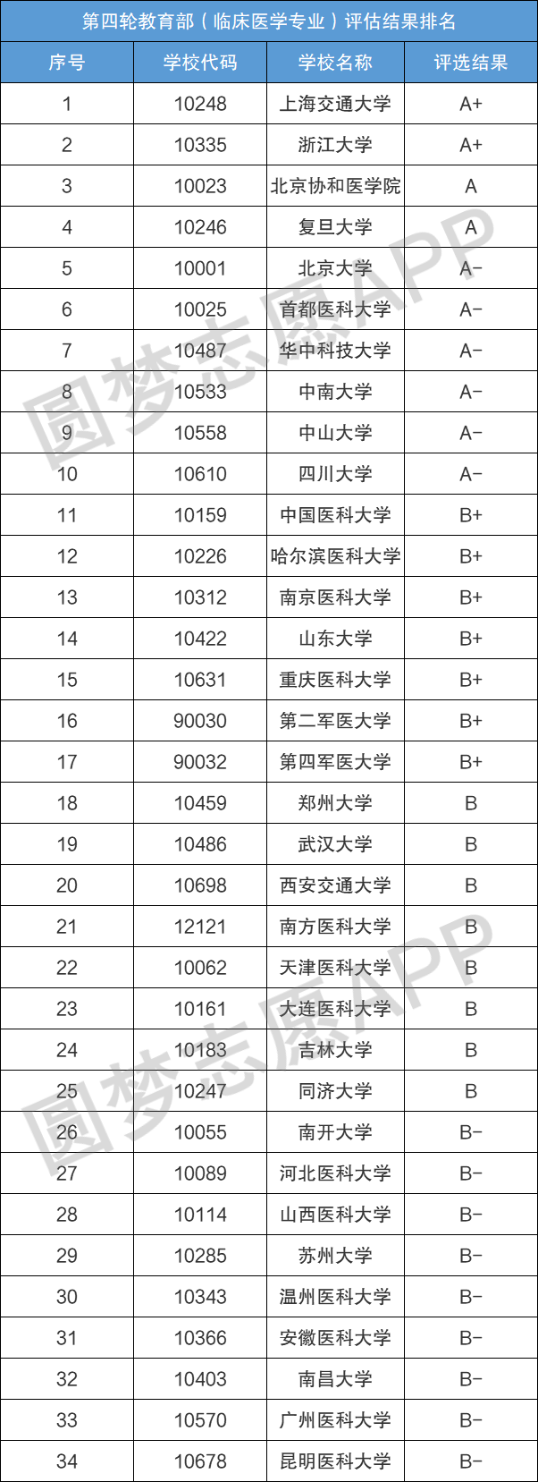 根据教育部学位与研究生教育发展中心发布的第四轮学科评估结果可知,北京大学的临床医学评估结果为A-,在第三梯队中。而上海交通大学和浙江大学的临床医学专业在全国是最好的。