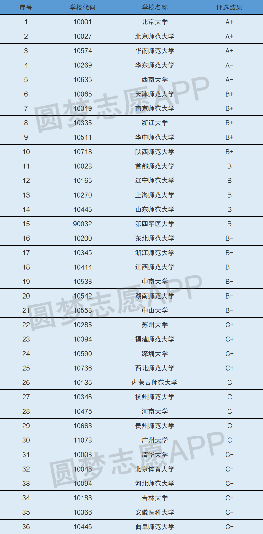 通过教育部公布的全国第四轮学科评估中的心理学专业的结果可知。评估结果如下: