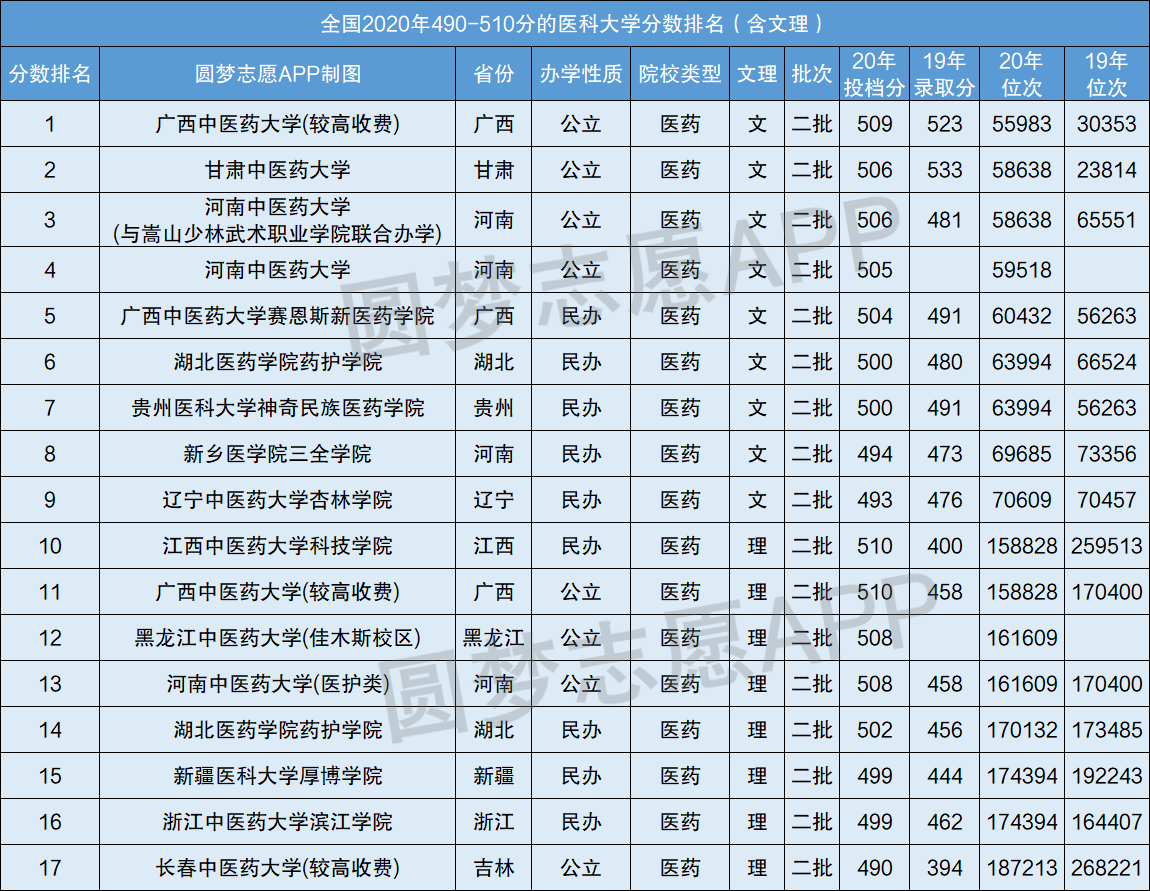 对于“500分能上哪些医科大学”这个问题,还是需要看自己高考所在地。因为每所院校在各地的招录情况是不一样的。这里小编就以河南省为例,为大家整理出490~510分的医科大学排名。