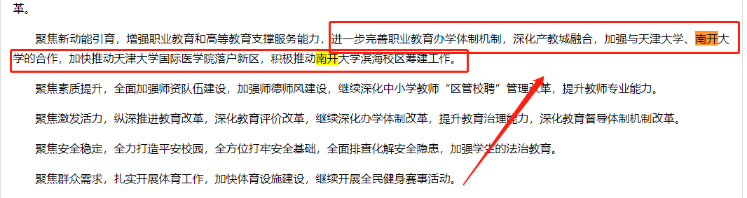 2021年1月21日,天津市滨海新区人民政府发布“滨海新区召开2021年教育体育工作会议”一文,称会“加强与南开大学的合作,积极推动南开大学滨海校区筹建工作”。不过目前官方还没有公示具体的转设方案,以上仅为小编个人猜测。