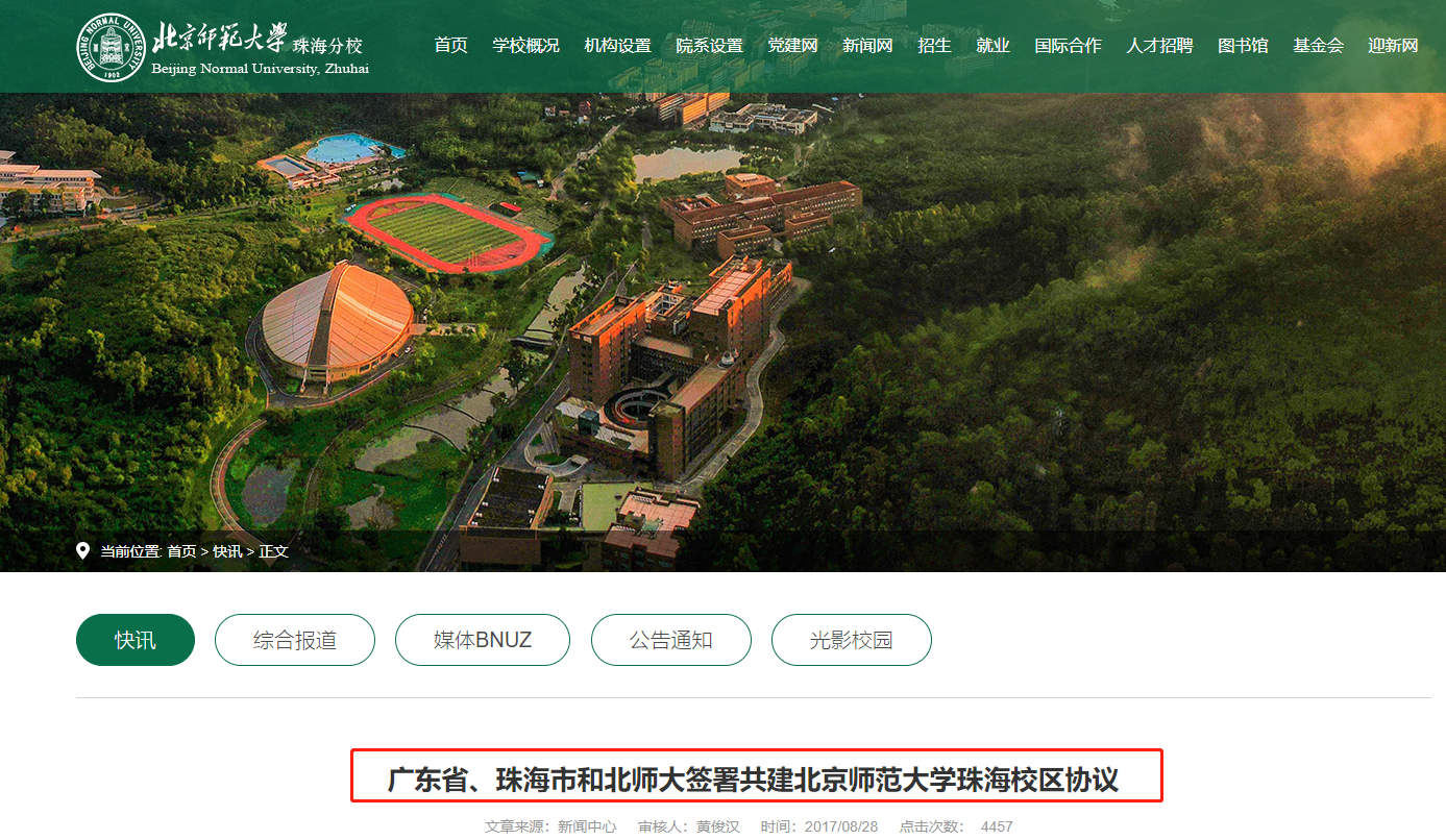 2017年8月,广东省教育厅发布“省市校签署共建北京师范大学珠海校区协议”一文,文中明确表示,此次签署协议不仅是为了深化合作内容,还是为了“推进北师大珠海分校平稳转设”。