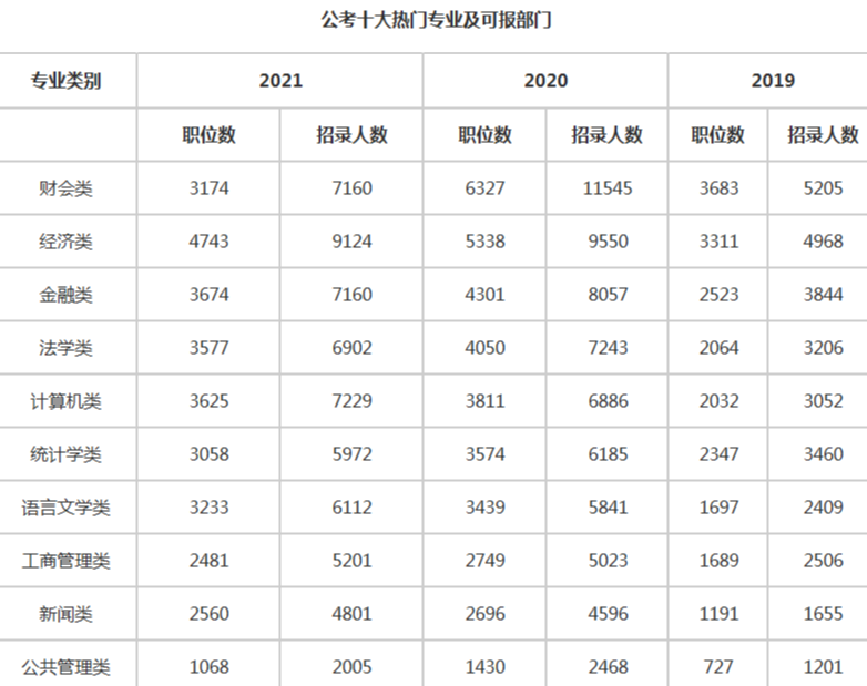 据中公网校对近三年国家公务员招录计划的统计数据,公务员考试中的一直都很热门的专业有三个,分别是经济学、金融学和法学。
