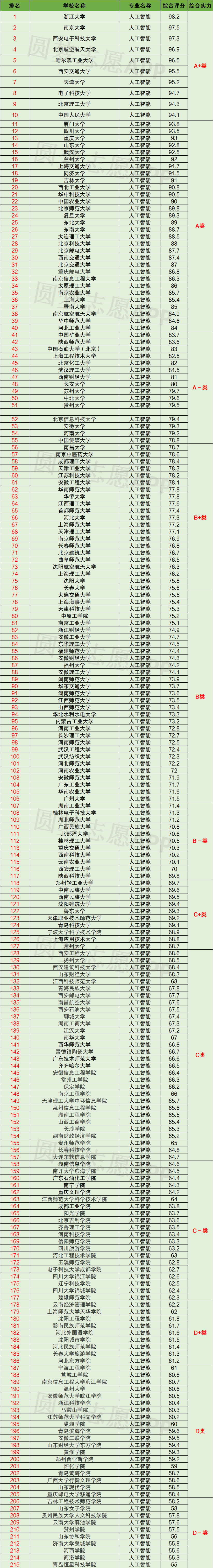 1、A类——人工智能教育教学综合实力总体水平位居全国高校第一