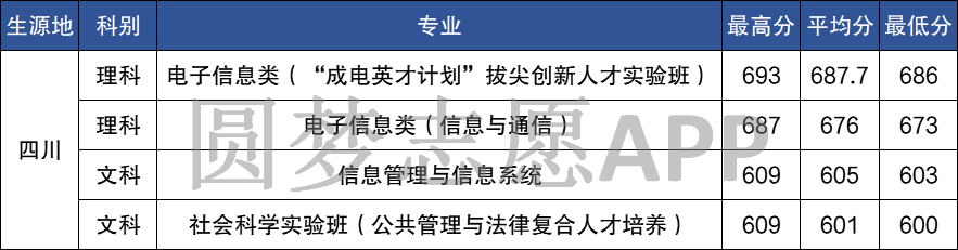 理科:电子信息类(“成电英才计划”拔尖创新人才实验班)、电子信息类(信息与通信);