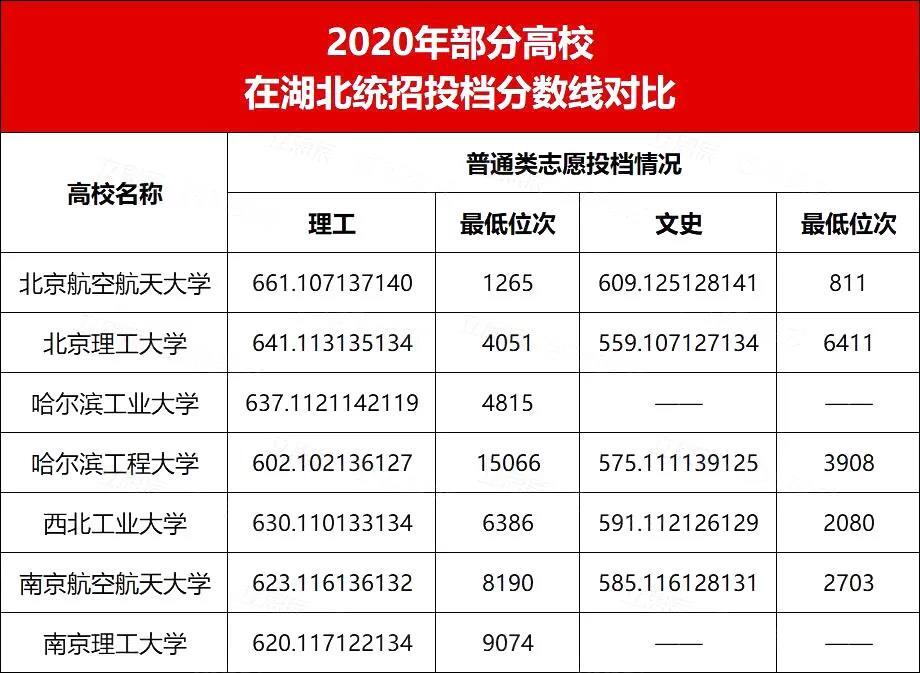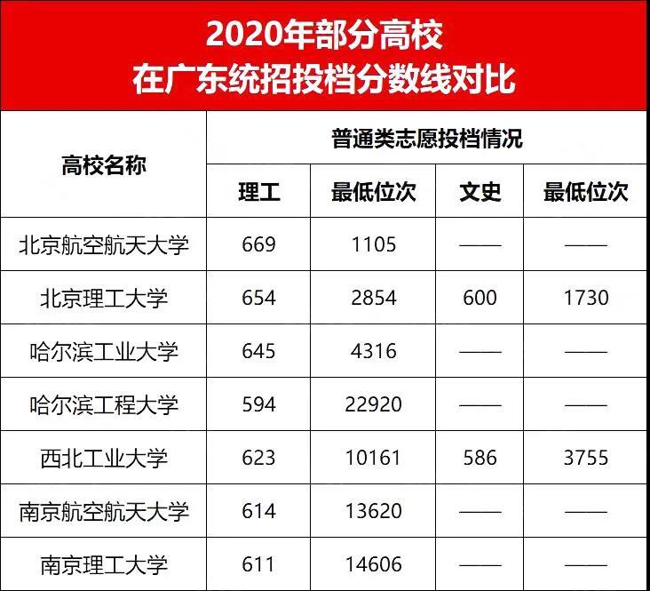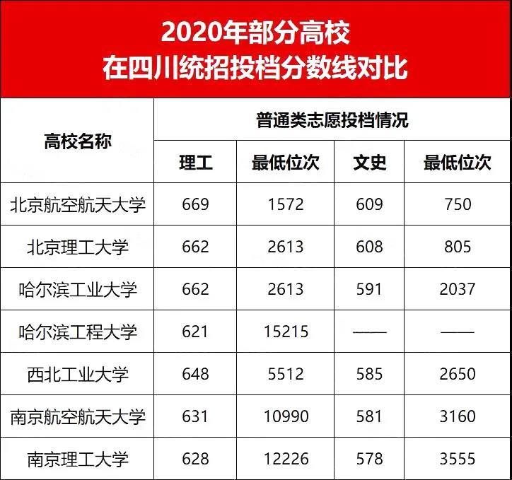 国防七子2020各省市投档线