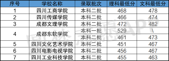 通过上述数据,可以看出四川省内民办大学收分最高的是成都文理学院,其中成都东软学院只有软件工程专业在本科一批招生。