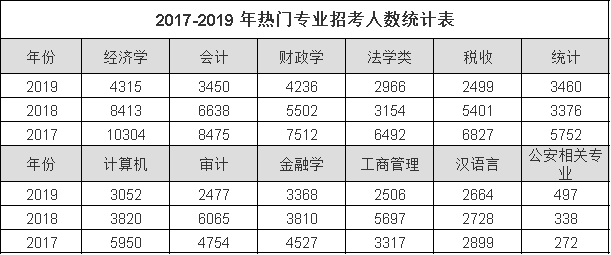 经统计,2017-2019年最热门易考的十大专业如下表,供大家参考。
