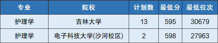 图一:985大学的护理学专业2020年在山东省的录取分数线及位次