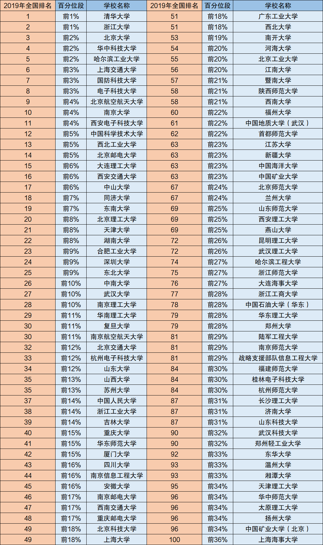 我们参考软科2019年中国最好学科排名和2017年全国第四轮学科评估结果,为大家整理了计算机科学与技术专业最好的大学排行前一百名。
