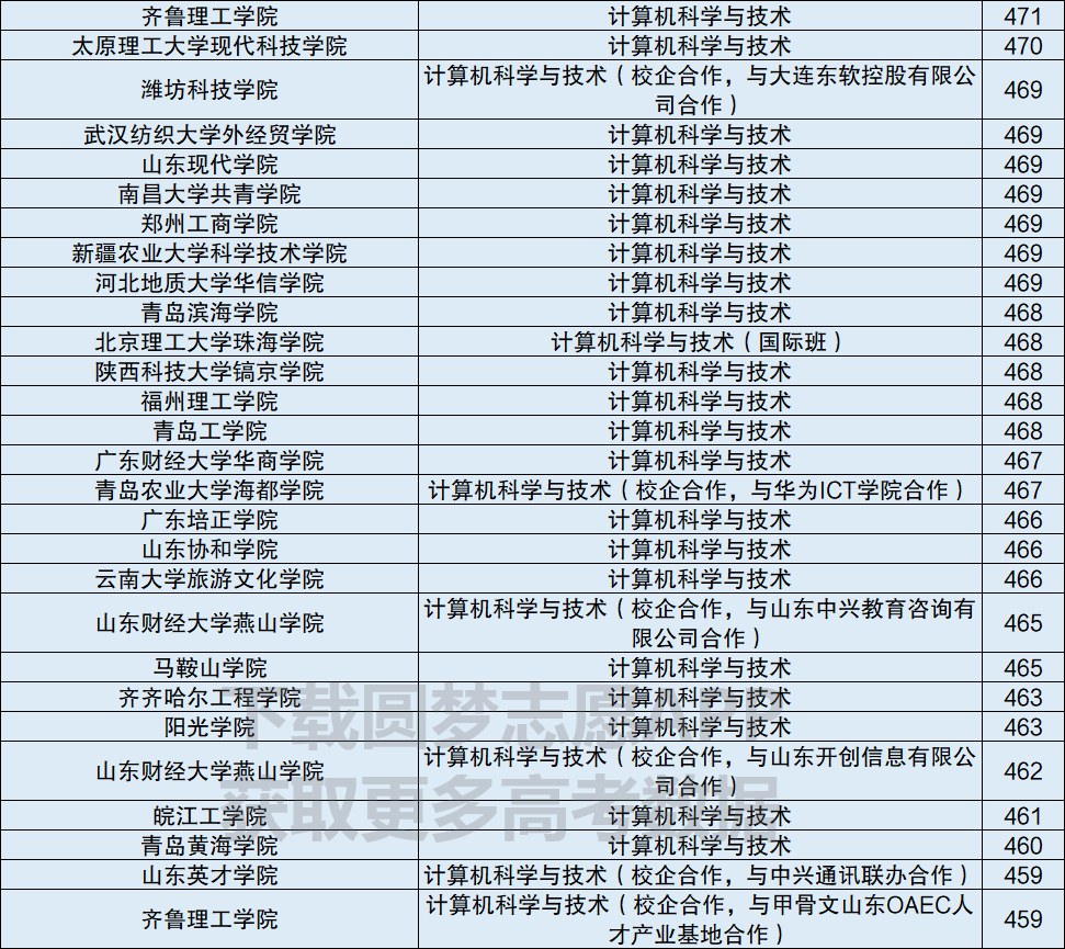 计算机专业收分最低的学校为山东外事职业大学、泉州职业技术大学和青岛恒星科技学院,录取分数分别为457分、456分和455分。不过,在这三所高校中,山东外事职业大学和泉州职业技术大学都为民办本科层次职业大学,青岛恒星科技学院则为普通民办本科。它们的计算机专业虽然收分低,但是都为民办高校,学费较高,考生在报考时一定要谨慎选择。