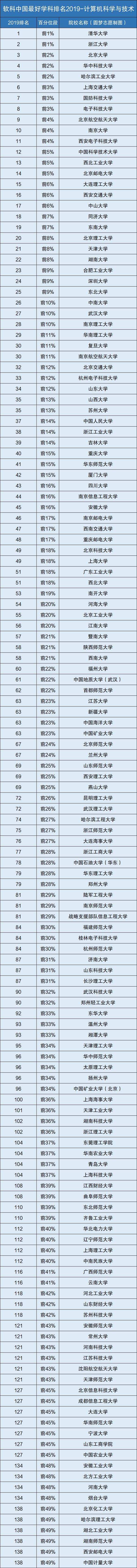 二、根据《软科中国最好学科排名2019-计算机科学与技术》,看排名