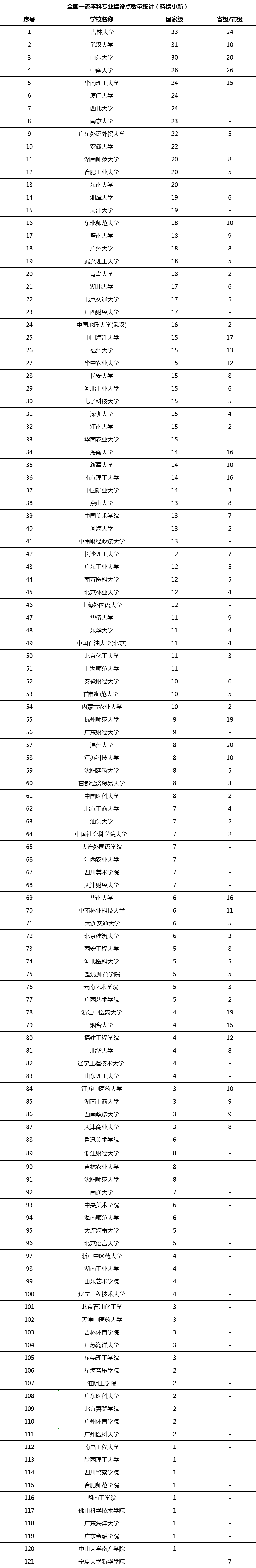 所以就目前公布的信息可知,在入选双万计划的院校中,一流本科专业数量排名前五的高校分别是:武汉大学、吉林大学、山东大学、中南大学、华南理工大学