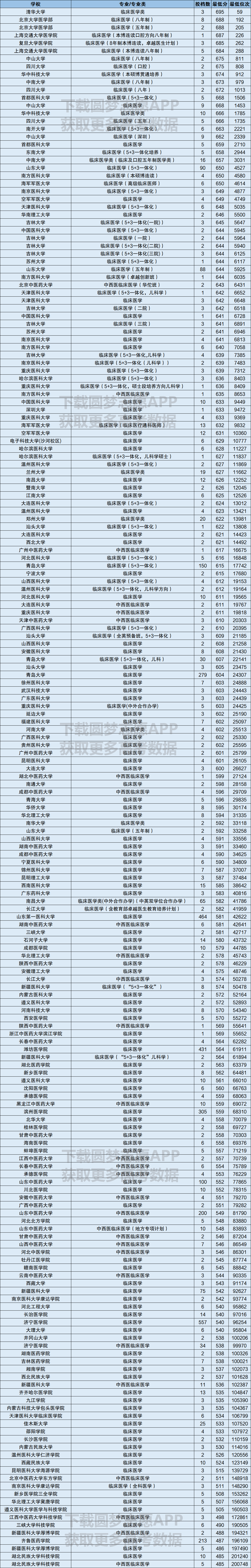 从以下数据可以看到,临床医学专业/专业类收分最高三所大学为清华大学、北京大学和上海交通大学。