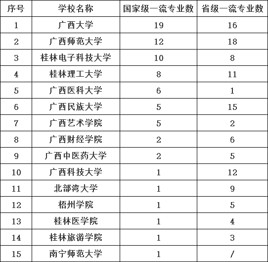 日前,教育部公布了首批一流本科专业“双万计划”建设点。其中广西15个高校75个本科专业入选国家级一流建设点名单,而广西大学、广西师范大学、桂林电子科技大学三所院校入选国家级专业数占全省54%,领跑省属高校。