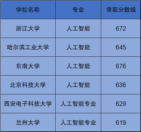 6所高校在北京的最低录取分数线(人工智能专业):