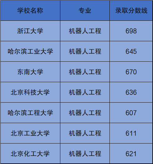 7所高校在北京的最低录取分数线(机器人工程):