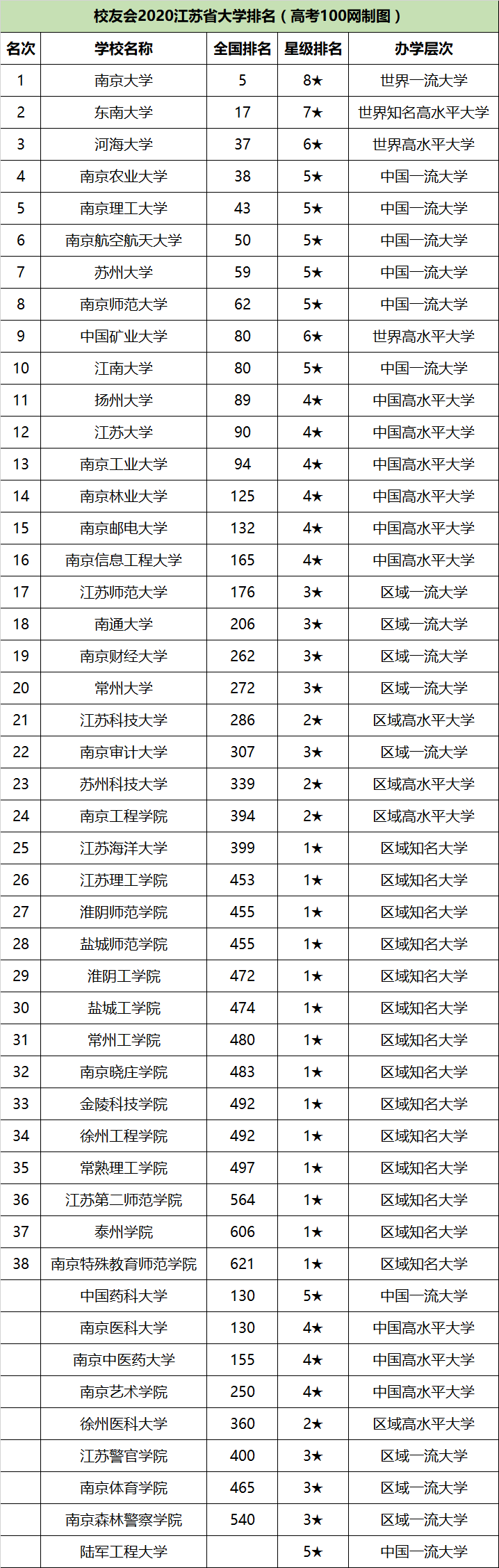 以下是江苏省2020年中国大学排名具体名单,供同学们查阅!