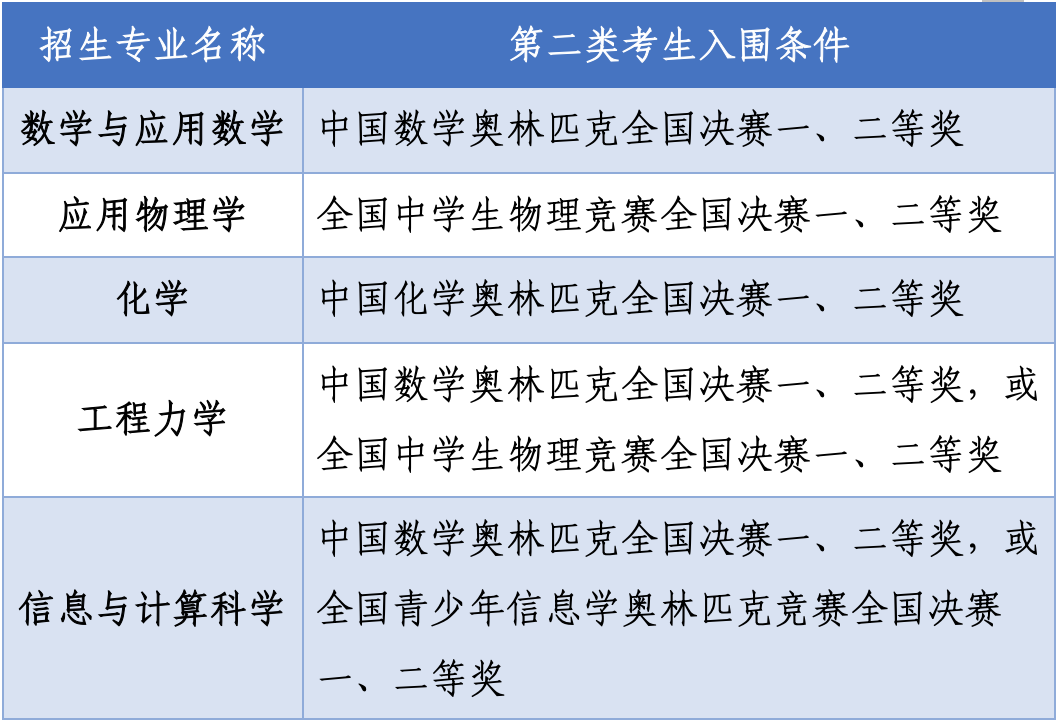 此外,以下是学校2020年强基计划招收“第二类考生”(相关学科领域具有突出才能和表现)各专业的校考入围条件,可供参考: